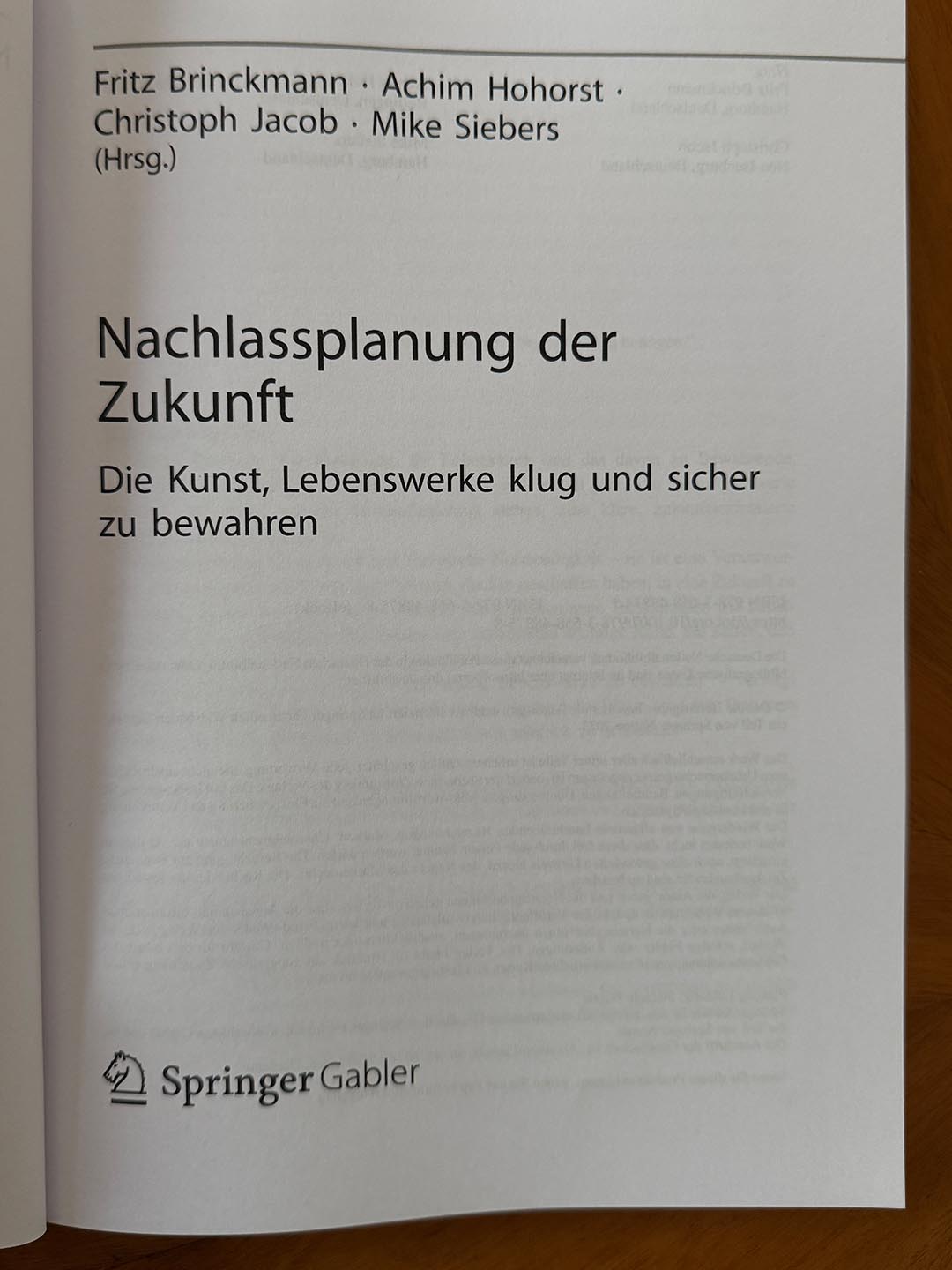 Vererben ohne Verderben - die Kunst, Lebenswerke klug und sicher zu bewahren. Wir freuen uns, dass das schwarmintelligente Netzwerk UBiQUA dieses Buch geschaffen hat. Dank an den Verlag Springer Gabler.