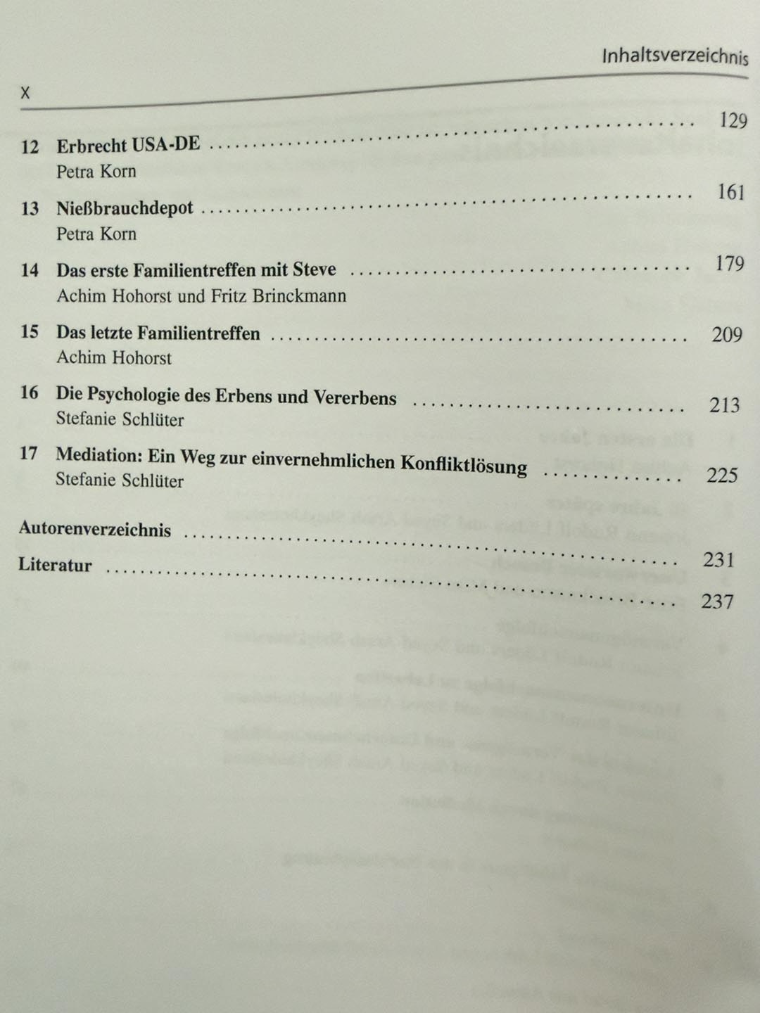 Dieses Buch erweitert konventionelle Erbplanung um strategische Vermächtnisgestaltung. Es öffnet psychologische Dimensionen und setzt auf präventive Konfliktvermeidung. In der fiktiven Schwarzenberger-Familienstory zeigen Dr.Johann Rudolf Lüders, Stefanie Schlüter, Petra Korn, Arash Sheykholeslami sowie die Herausgeber Fritz Brinckmann, Achim Hohorst, Christoph Jacob und Mike Siebers psychologische, gesellschaftliche, steuerrechtliche Aspekte – unverzichtbare Lektüre für Erblasser, Erben, Mediatoren, Steuerberater, Anwälte, Vermögensverwalter, Banken und Notare.